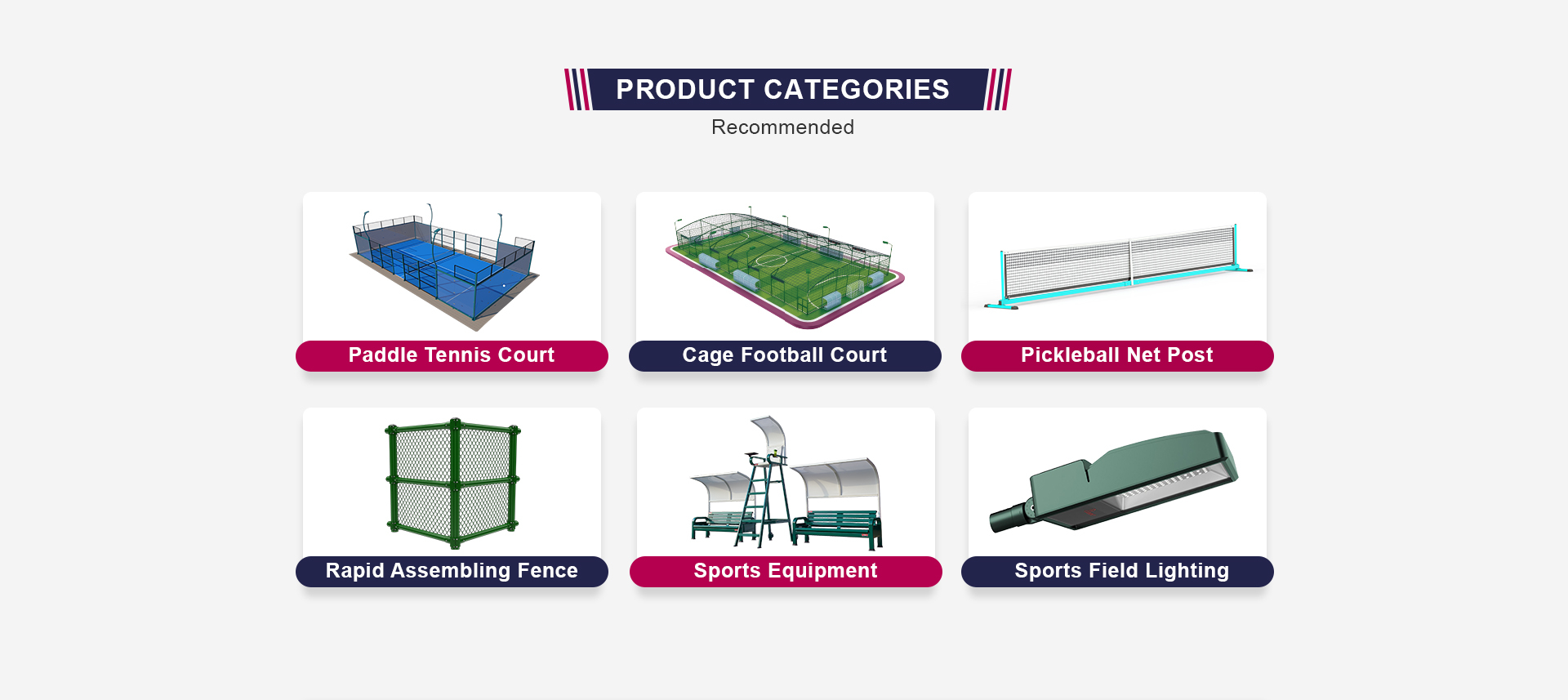 Productos principales:Valla recubierta de PE de alta calidad, sistema de esgrima, cancha de fútbol con jaula, instalaciones de apoyo para campos deportivos, Serie de iluminación de campos deportivos profesionales